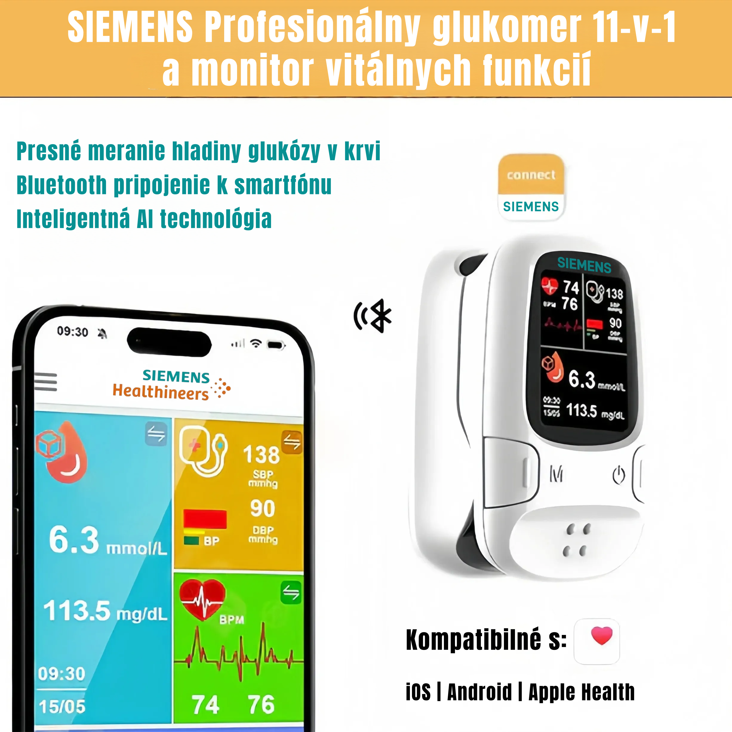 Neinvazívny glukomer 11-v-1 – bezbolestné a presné monitorovanie zdravia